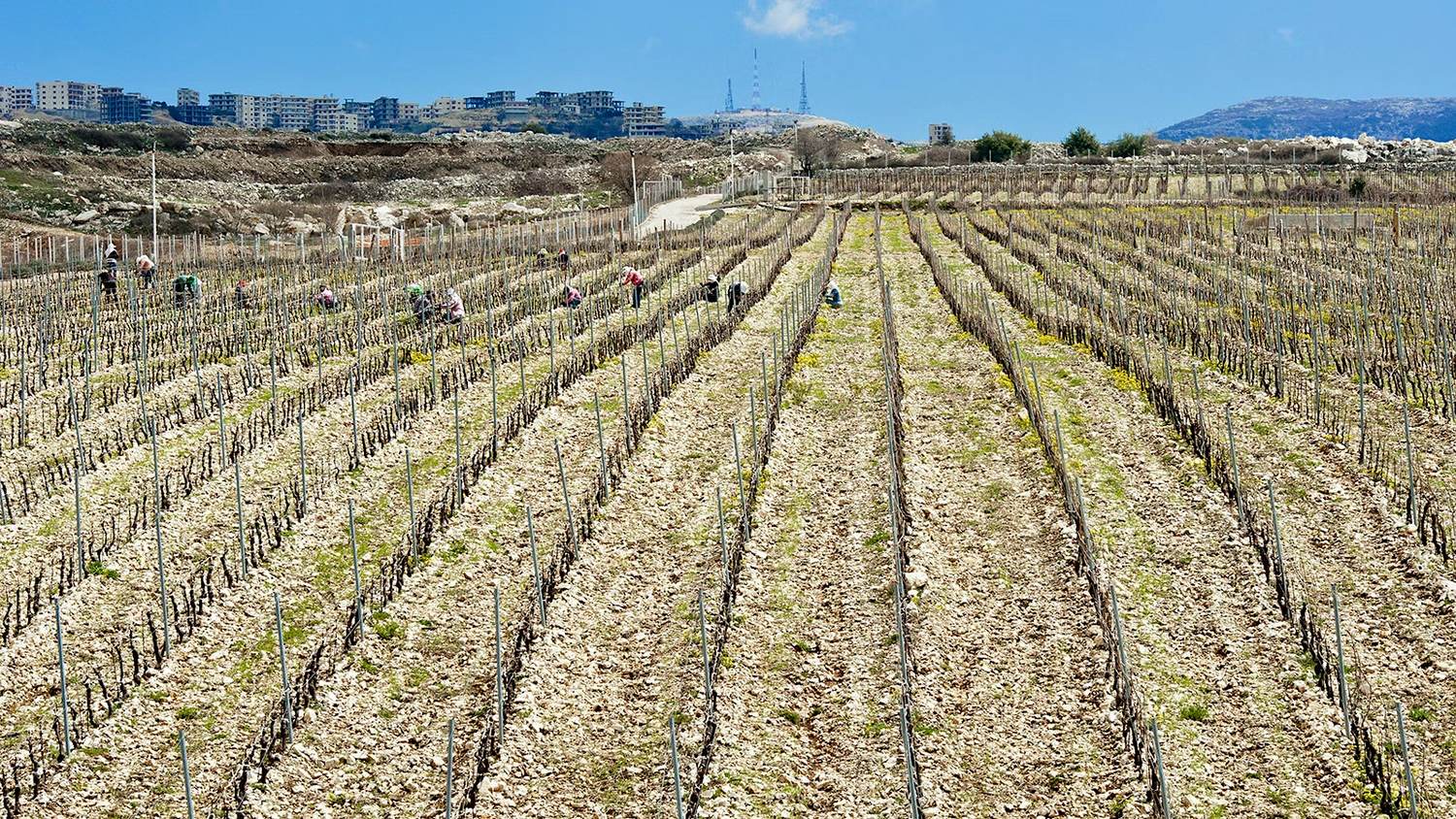 Autour de la ville, se déploient des hectares de maraîchages et des vergers de pommes et d’agrumes. Mais ce sont les champs d’oliviers qui font la réputation de ce terroir au sol pauvre, dominé par une terre argilo-calcaire mêlée de silex ; et qu’ils partagent avec les vignes, plantés sur les parcelles les plus arides du plateau, entre 800 et 900 mètres d’altitude. Là, les écarts de température entre le jour et la nuit sont considérables et l’humidité qui vient de la mer peut être étouffante. Là, les vignobles du Domaine de Bargylus attendent l’automne précoce. Celui qui précède la pleine maturité des raisins, et permet une lente maturation des tanins et la préservation de la fraîcheur aromatique malgré le fort ensoleillement estival qui confère à ses bouteilles son goût corsé.